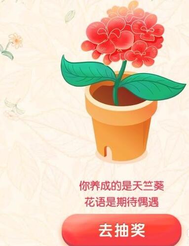 6.點(diǎn)擊花盆下方的“去抽獎(jiǎng)”,即可隨機(jī)抽取優(yōu)惠券,聽說還有可能抽到花束呢,小編是沒抽到,靠大家運(yùn)氣哈