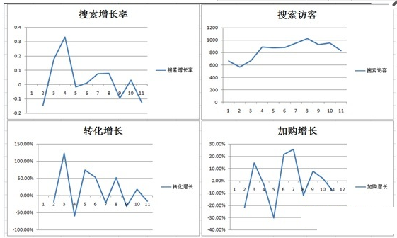 1,寶貝的搜索訪客逐步增加,但搜索增長率在逐步下降。