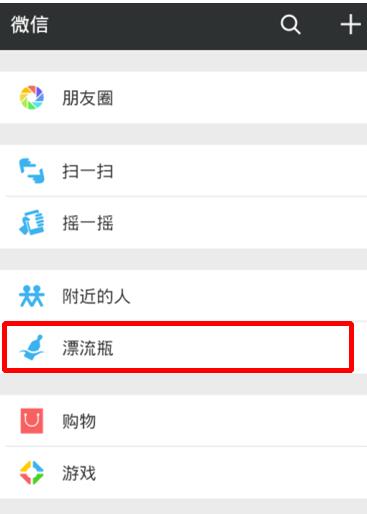 在發(fā)現(xiàn)頁面中,選擇漂流瓶