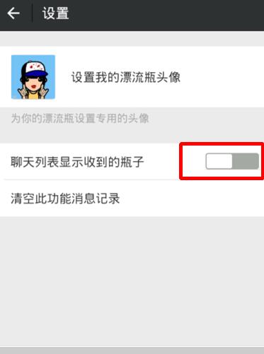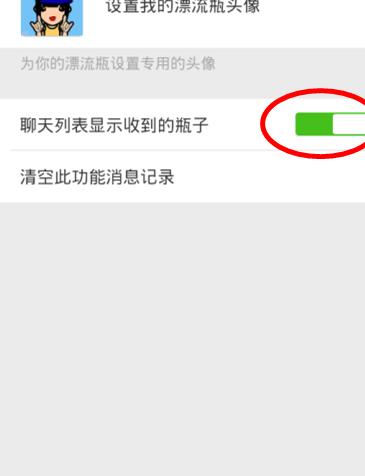 這時(shí),聊天列表顯示漂流瓶,是出于關(guān)閉狀態(tài)