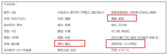 另外就是標題的寫作,如果你的標題當中都含有“韓版”、“春款”、“碎花”、“顯瘦”這樣的屬性詞,那么也比較容易被貼上比較強烈的這類標簽屬性。