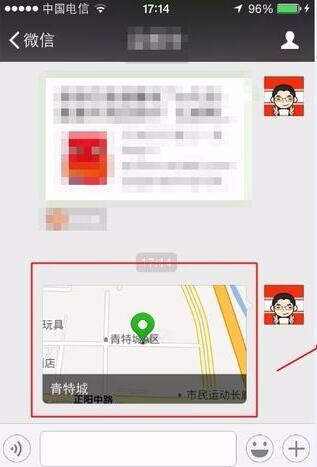 4、我們選擇具體位置之后,就可以將具體的位置信息以地圖坐標(biāo)的方式發(fā)送給朋友了。