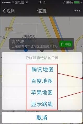 5、朋友在接送到你發(fā)送的位置地圖信息之后,點(diǎn)擊綠色圖標(biāo)就可以開始選擇他最為熟悉的地圖軟件開始為自己導(dǎo)航了。