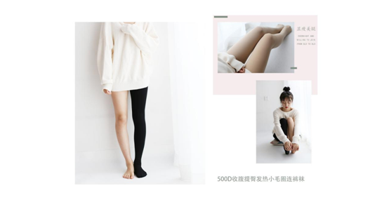 另外文案的排版上也做了修改,主文案“抵御寒冬”,凸顯了我們的產(chǎn)品是保暖的,次文案“裙擺下的溫暖”,表明了我們買(mǎi)的是加絨襪褲,使產(chǎn)品更加清晰直觀(guān)。