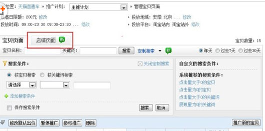 2.點擊進入后,點擊“寶貝頁面”右側的“店鋪頁面”: