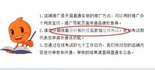 3.頁面中顯示有店鋪推廣的考試鏈接,請先仔細閱讀教程,然后再參加考試,80分才能通過。如果大家通過了考試,官方會在7個工作日內進行審核,結果會以旺旺消息和直通車公告的形式通知大家。
