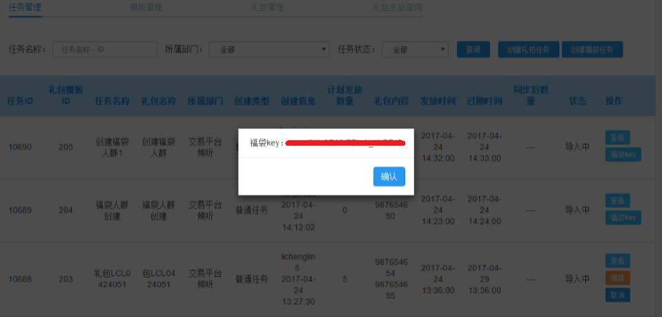 4、等待狀態(tài)變?yōu)椋骸皩?dǎo)入成功”,在操作中,點(diǎn)擊“福袋KEY”,復(fù)制福袋key值,如下圖:
