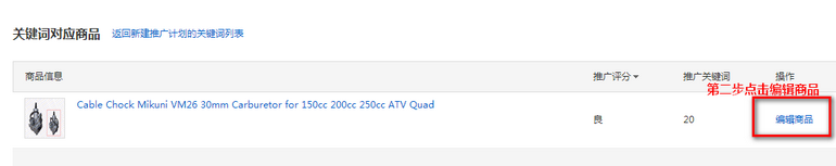 直接點擊要優(yōu)化的關(guān)鍵詞,這個時候頁面會跳轉(zhuǎn)到該關(guān)鍵詞對應(yīng)的產(chǎn)品頁面了。如圖:
