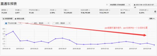 3:3天后當(dāng)我們穩(wěn)定在10分之后呢,我們要做的就是轉(zhuǎn)化率的從上面的圖片看出來,轉(zhuǎn)化率還是很高的,只有當(dāng)我們轉(zhuǎn)化率是行業(yè)的1.5-2倍以上,我們才可以突破這個10分,從而降低我們的PPC?! ?/p>