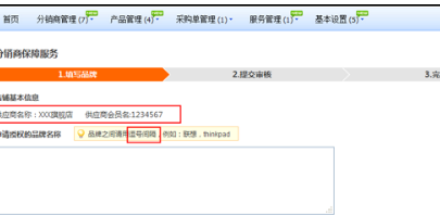 點擊申請之后,就會出現(xiàn)以下相關的信息,你要去認證的核對,如果核對無誤,您要申請“品牌授權”的品牌填入空白的文本框中,多個品牌之間用逗號隔開。