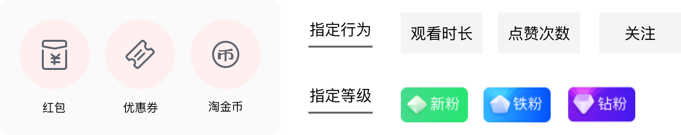 1- 投放用戶:選擇鐵粉、鉆粉不同等級用戶派發(fā)不同力度權益:如鐵粉才可以領取的紅包。