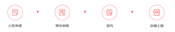 想要入駐拼多多,那么流程就分為四步走,分別是入駐申請(qǐng)—等待審核—簽約—店鋪上線,如圖所示: