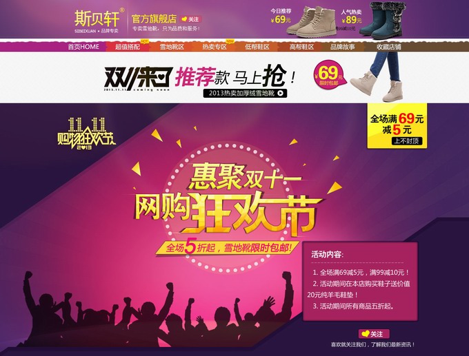 紫色淘寶雙11來了促銷頁面設(shè)計模板包含店招psd素材