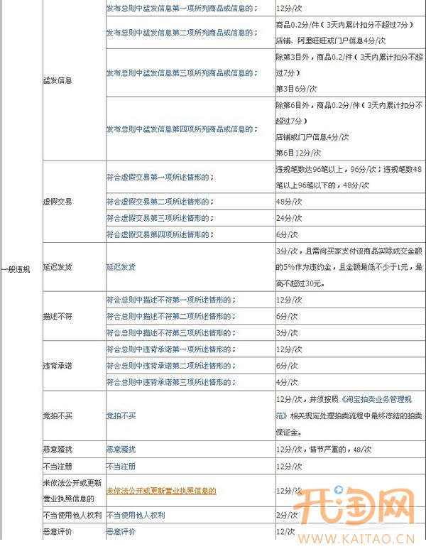 淘寶規(guī)則之各項違規(guī)處罰扣分匯總