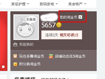 2、在頁面的右側(cè),可以看到自己的賬號,點擊圖中的“我的淘金幣”